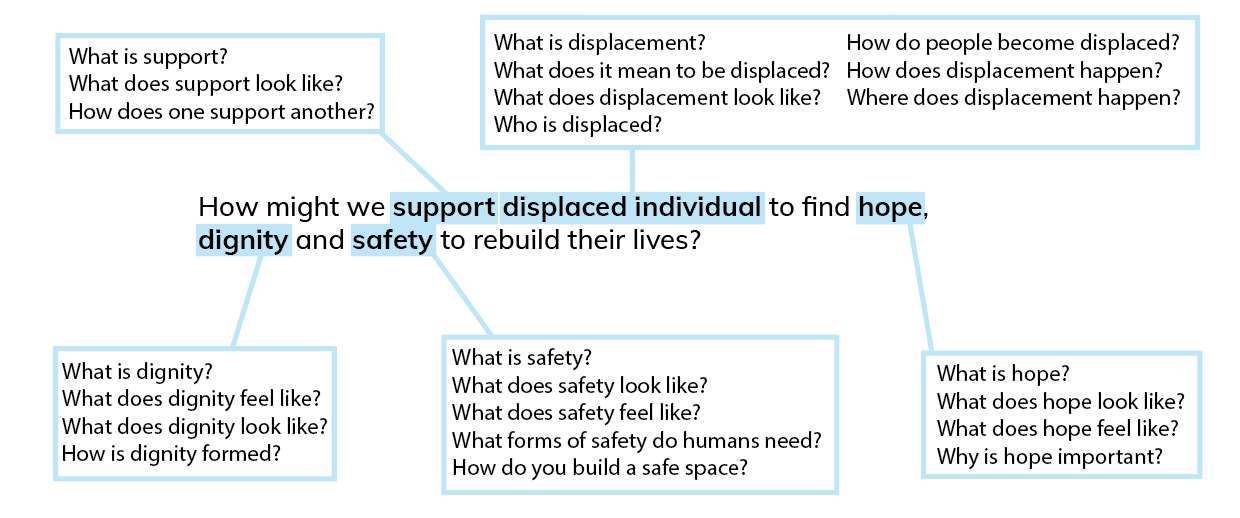 How might we support displaced individual to find hope, dignity and safety to rebuild their lives?