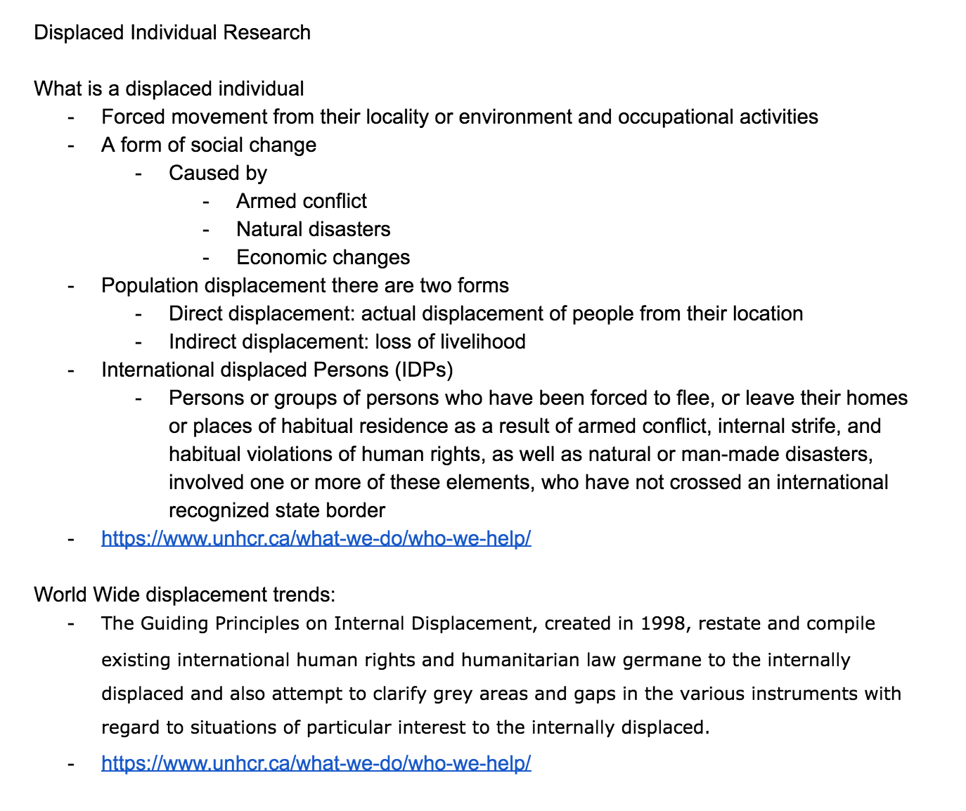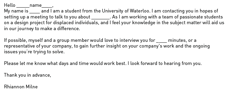 Prior to speaking with the end user (displaced individuals), I wanted to speak with third parties. In order to gain a history of displacement in Canada and knowledge of current refugee services.