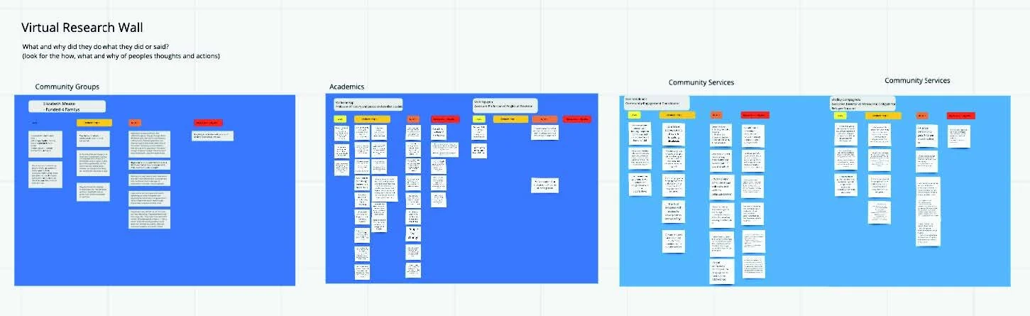 I lead my team in translating our user interview notes into insights through affinity mapping on a virtual research wall.