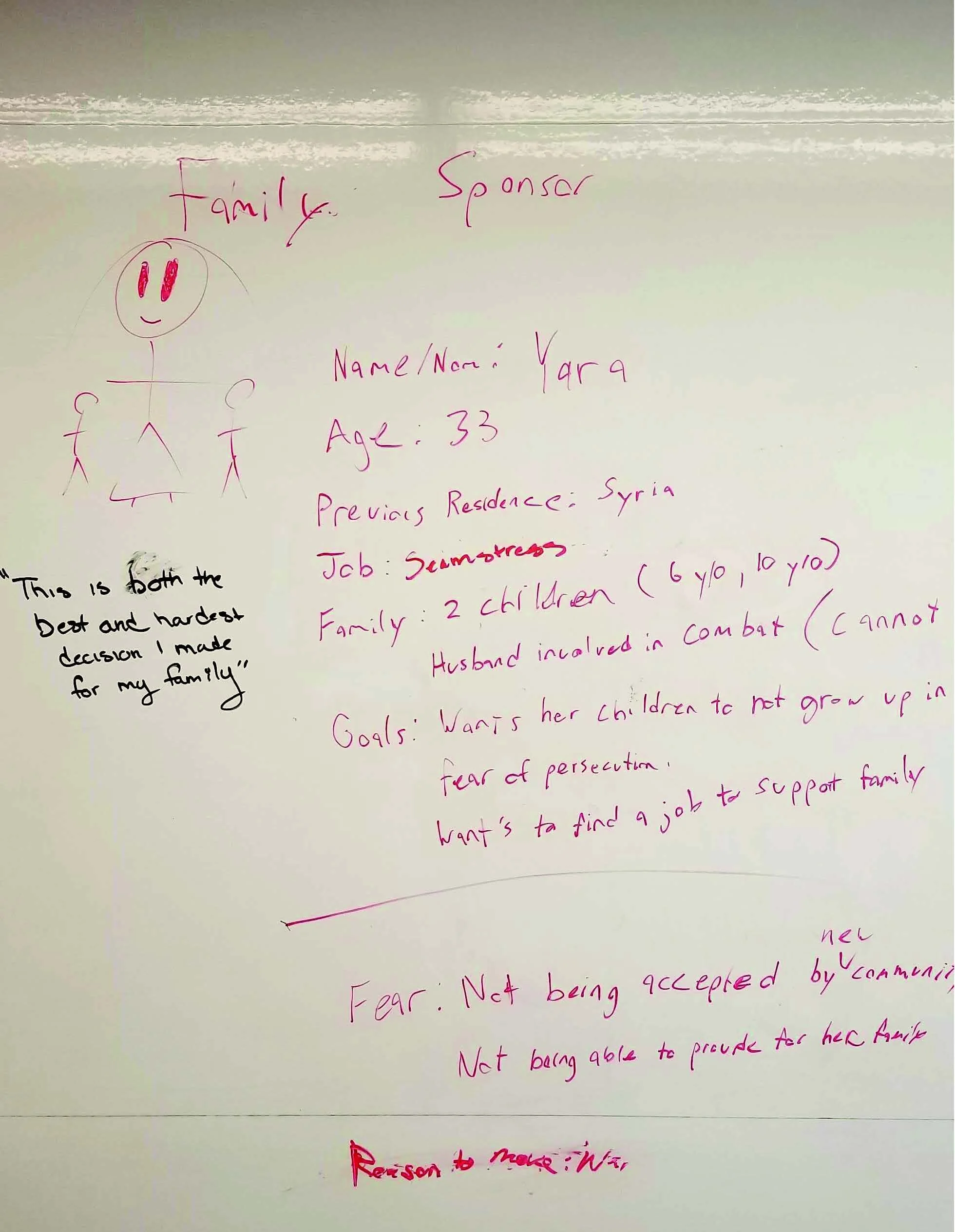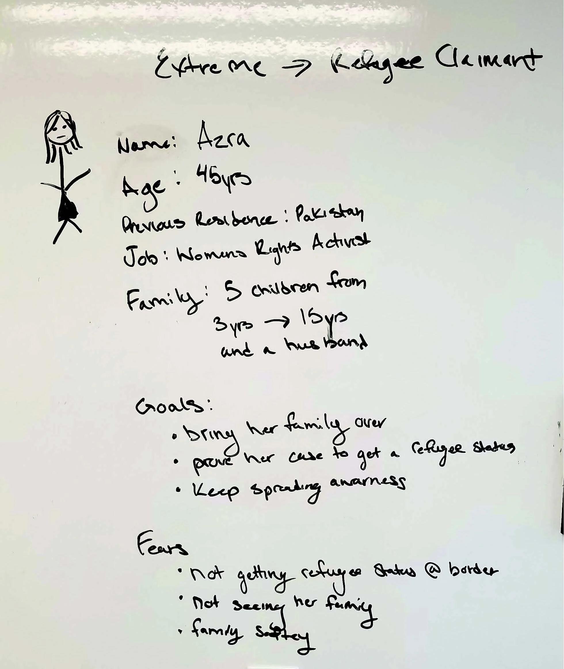 I designed a persona for each classification of refugee. Using findings from the generative research study and excerpts from user interviews. The personas helped the team understand who they were designing for, and the needs/wants of each user.
