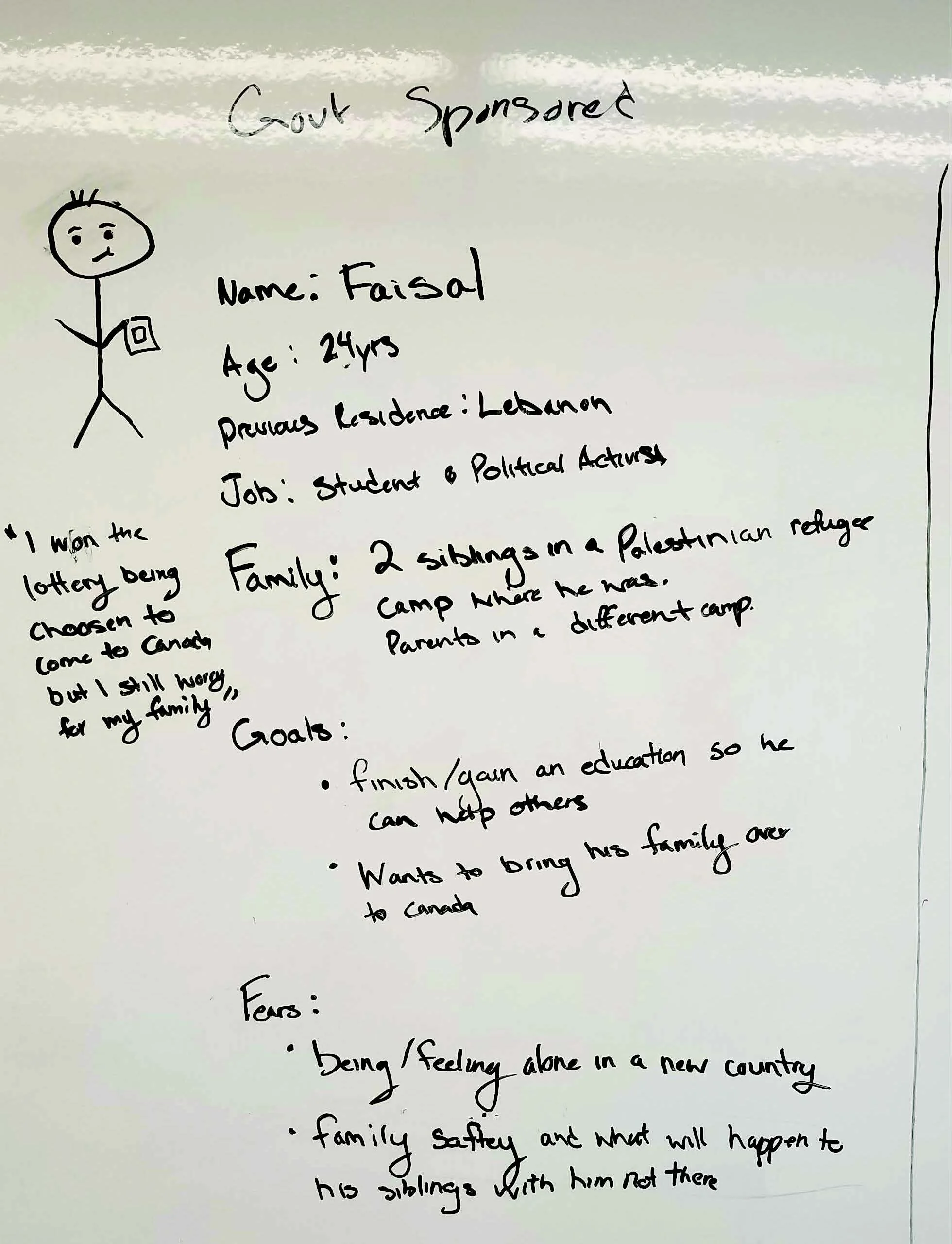 Through research our team learned that in Canada there are 3 classifications of Refugees. A Refugee claimant, family sponsored Refugee and government sponsored Refugee.