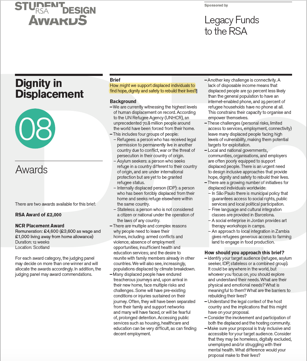 During my final year of undergrad, I participated in the Royal Society of Arts (RSA), student design competition.